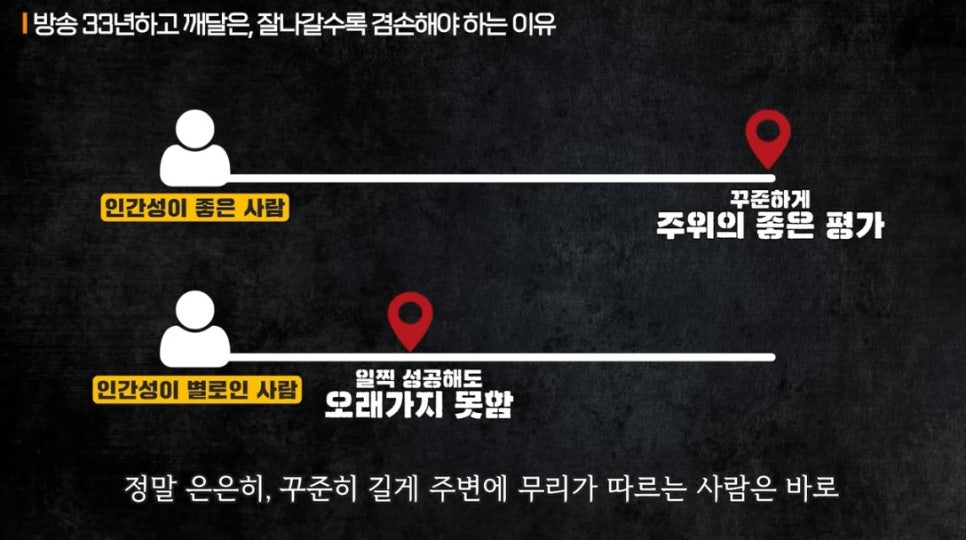 그러나 긴 세월 동안 꾸준히 사랑받고, 존경받고, 신뢰받는 사람은 결국 인간성이 좋은 사람입니다.
