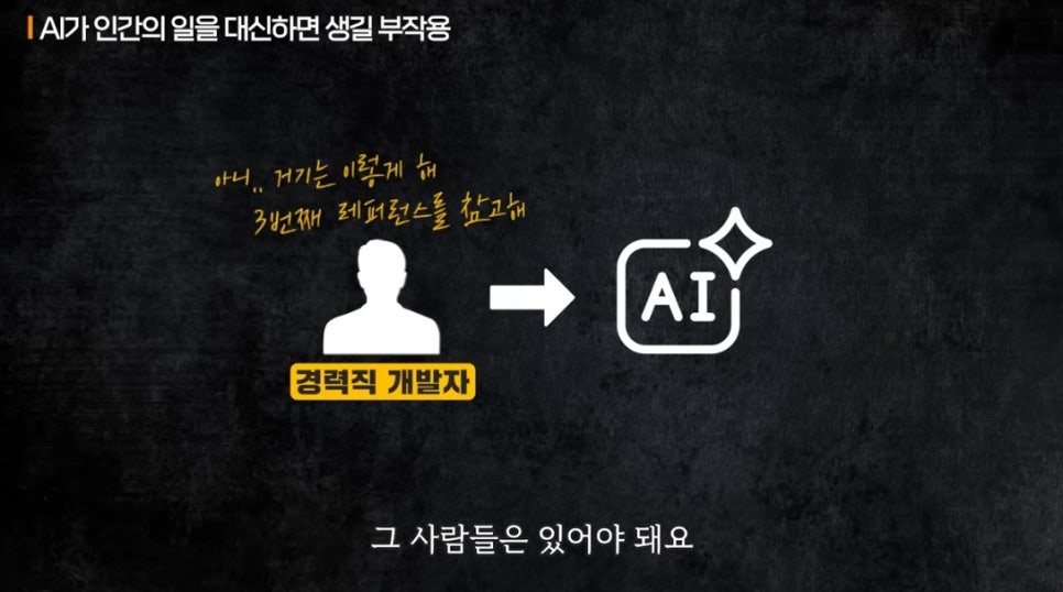 하지만 숙련자가 없는 상황이 이어지면, 사회 전체적으로 AI를 잘 다루고 활용하는 역량이 크게 떨어집니다.