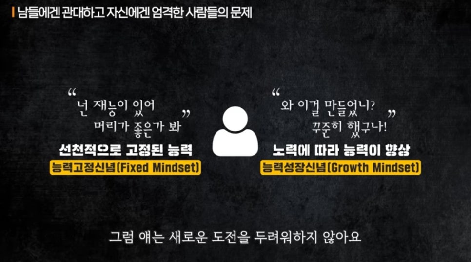 그래서 중요한 건 재능을 칭찬하는 게 아니라, 노력과 과정을 칭찬하는 겁니다.