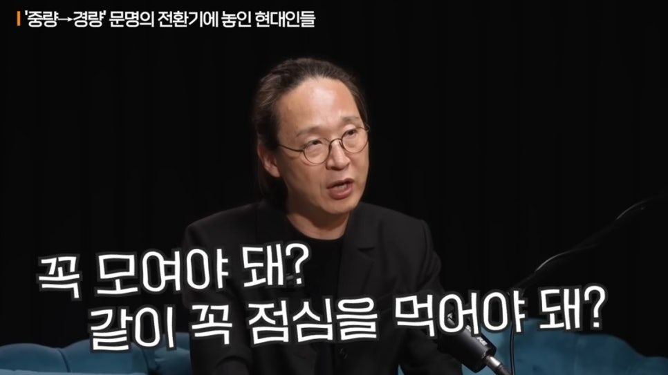 그래서 저는 이 시대를 ‘경량문명’이라 부릅니다. 같이 모여야 돌아가던 세상이, 이제는 흩어져도 굴러가는 세상이 된 거죠.