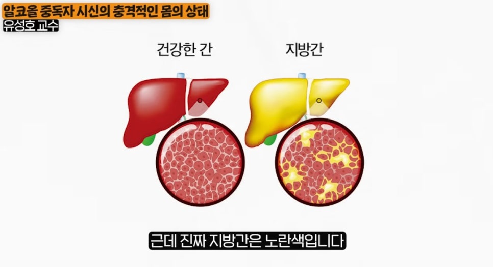 정상 간은 붉은 벽돌색이지만, 지방간은 노랗고 끈적하며 흉측합니다.
