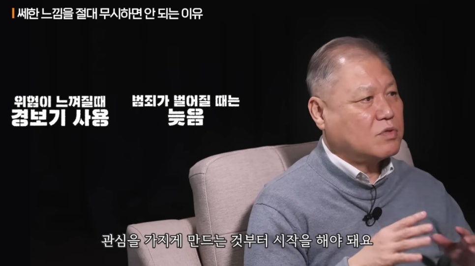 권 교수님은 이 감각을 절대 무시하면 안 된다고 강조합니다. 범죄자들은 소리를 극도로 두려워합니다.
