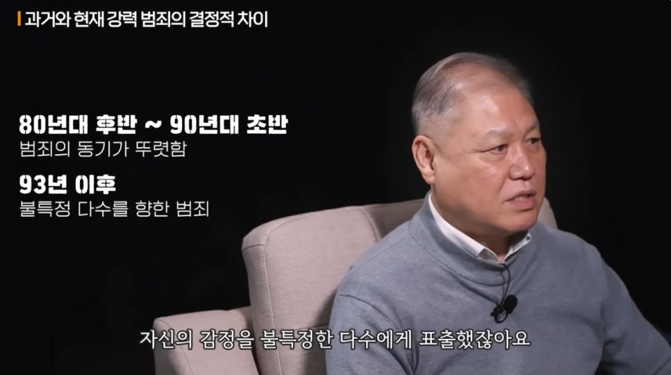 강력 범죄를 오랫동안 연구해 온 권일용 교수님은 시대별로 범죄의 유형 자체가 완전히 달라지고 있다고 말합니다.