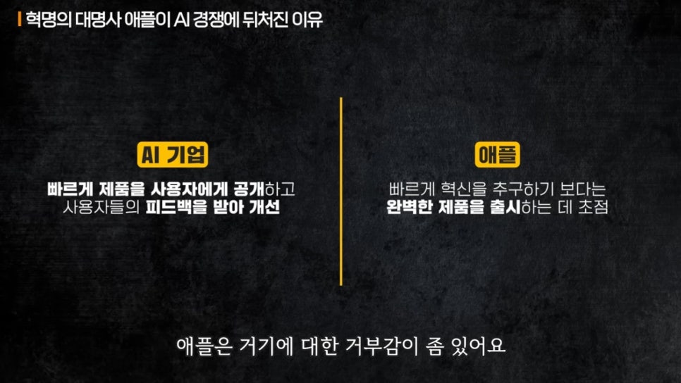 애플은 완벽함을 추구하는 폐쇄형 문화, 오픈소스를 기반으로 빠르게 진화하는 AI 트렌드와 잘 맞지 않습니다.