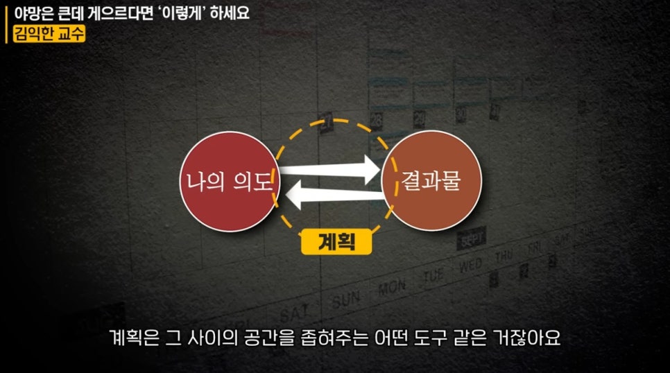 계획이란, 나의 의도와 그 의도를 실행했을 때 나오는 결과물의 사이 공간을 좁혀주는 도구에요.