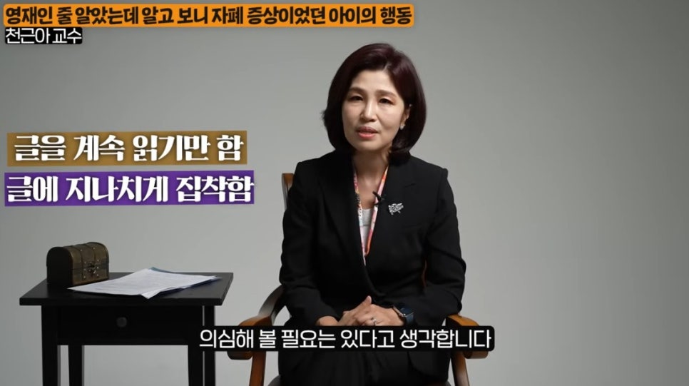 어떤 아이들은 질문에는 반응하지 않은 채 글자만 계속 읽는 등 집착적 패턴을 보이기도 합니다.