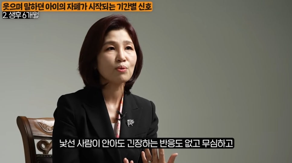 정상 발달 아이들은 이 시기에 부모 얼굴을 보고 사회적 미소를 짓습니다. 하지만 자폐 스펙트럼 아이들은 이 반응이 희미하거나 나타나지 않기도 합니다.
